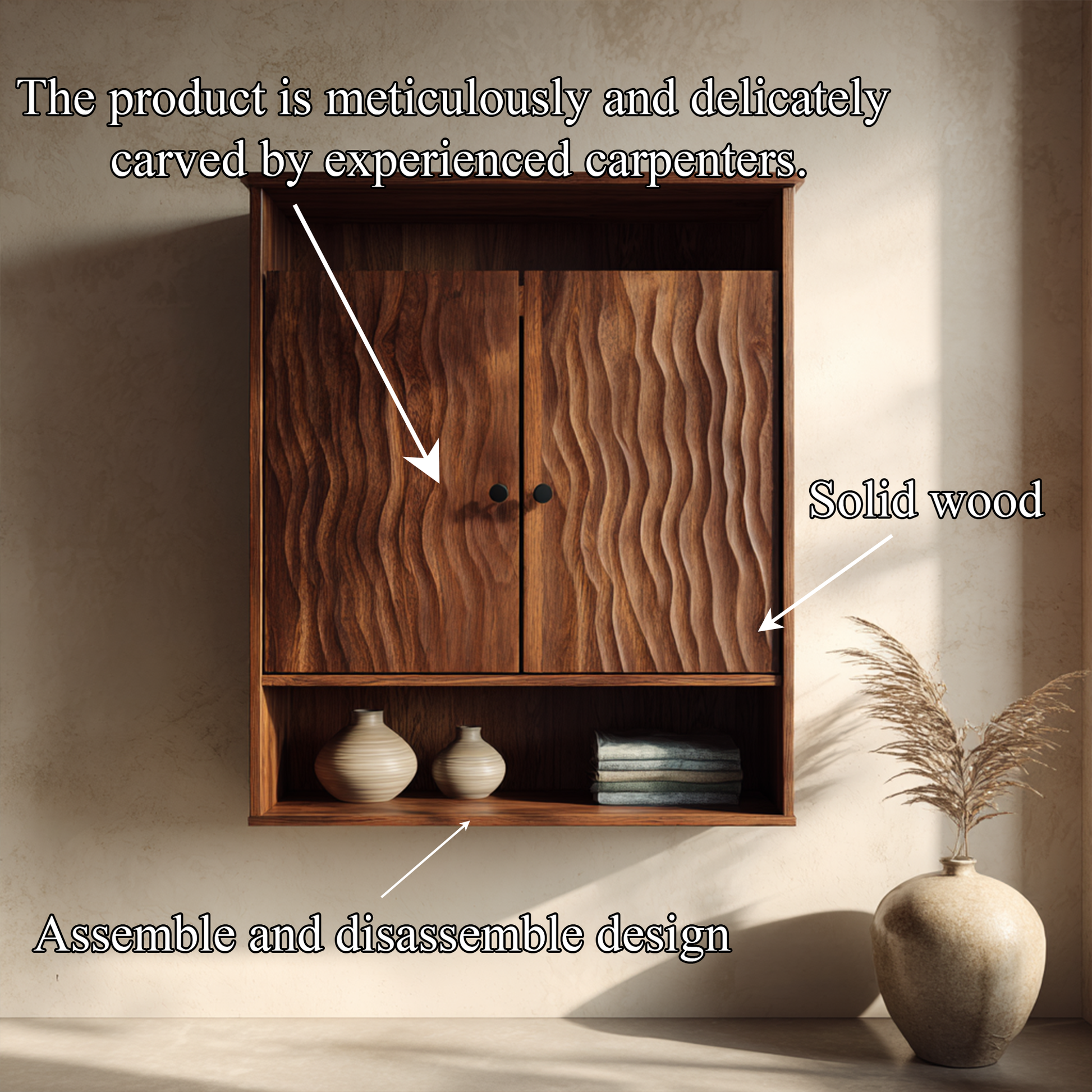 Crafted from natural solid wood, the cabinet showcases authentic grain patterns and warm tonal variations. These organic details ensure every piece is unique, highlighting the beauty of real wood while offering durability for everyday use.